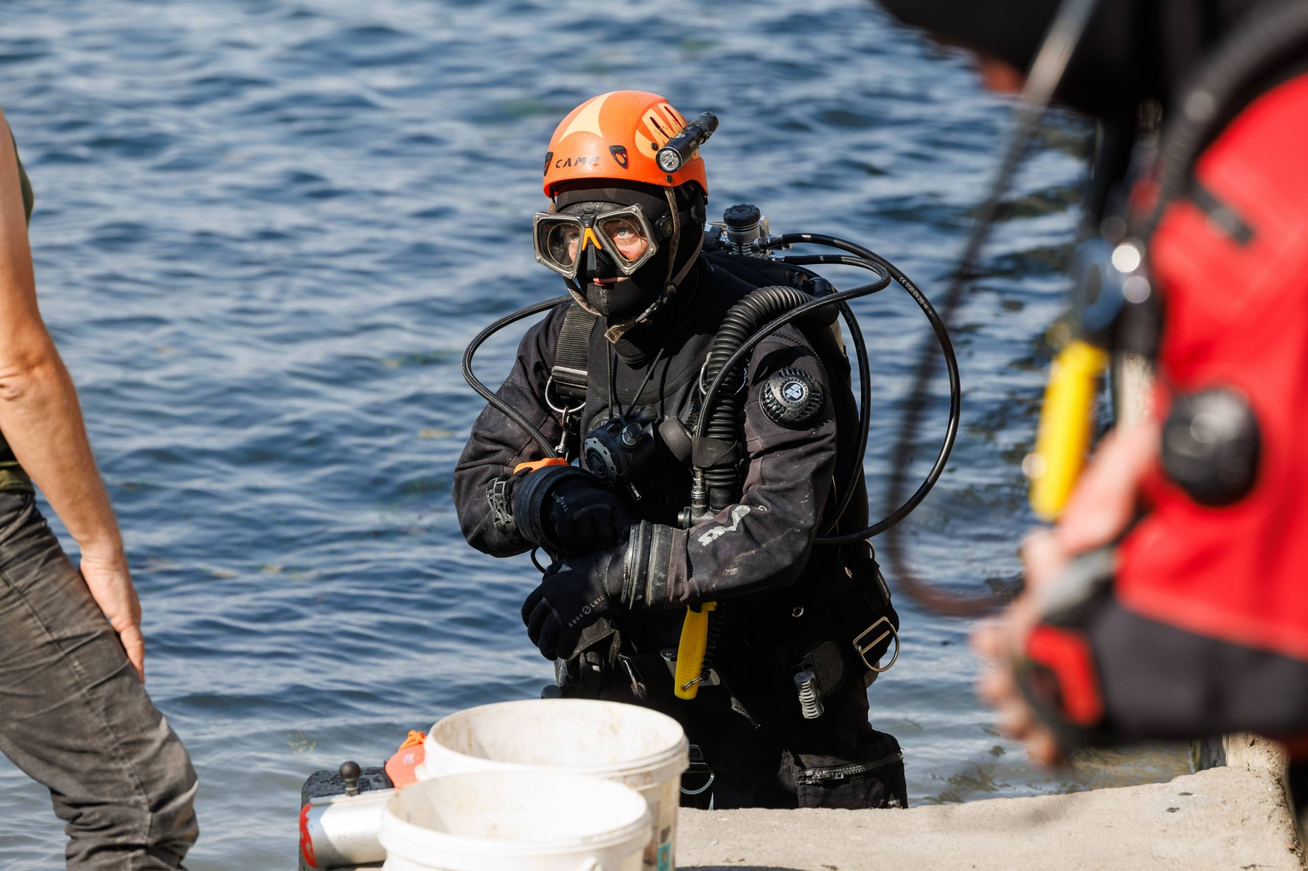 L’un des plongeurs en action, tout près de la Marina de Beauharnois. (Photo : Le Soleil – Denis Germain)
