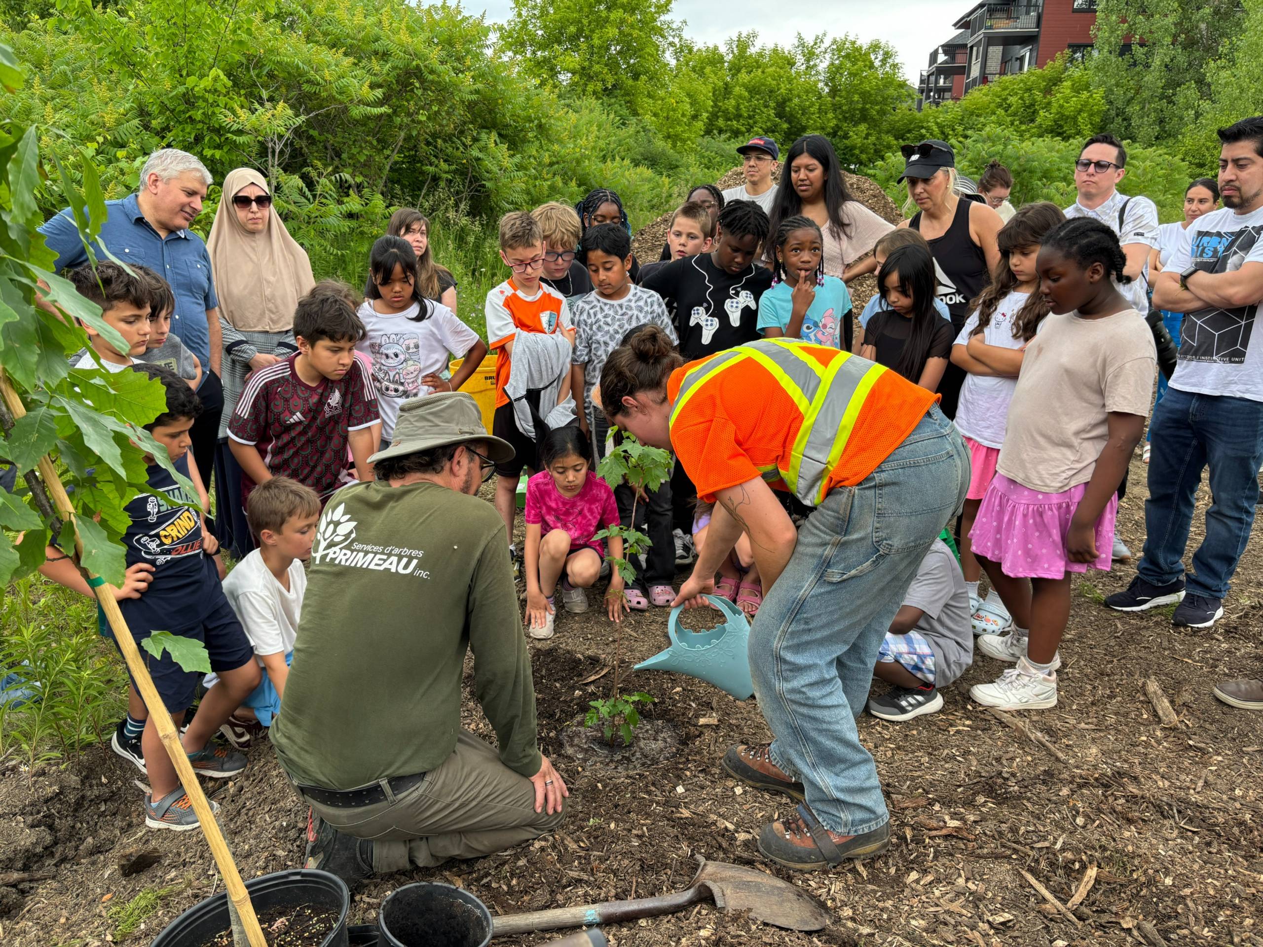 L’enseignante a poussé plus loin l’expérience des jeunes. L’idée d’une plantation d’arbres a germé. Elle a communiqué avec Services d’arbres Primeau à Châteauguay. «Ça m’a interpellé», mentionne Guy Primeau. L’entrepreneur philanthropique a accepté de participer au projet afin de «cristalliser la pédagogie» de l’enseignante. «J’ai prêté la main-d’œuvre et mon savoir-faire. J’ai fourni de petits arbres, d’une valeur de 1000 $», précise l’arboriste. M. Primeau a fait don de 15 arbres, dont des chênes bleus, des tilleuls et des bouleaux jaunes. Onze des arbres ont été mis en terre par les élèves, un par le maire de Châteauguay Éric Allard, un par l’enseignante Mme Christine et deux arbres supplémentaires ont été donnés «pour le plaisir de compléter la plantation».