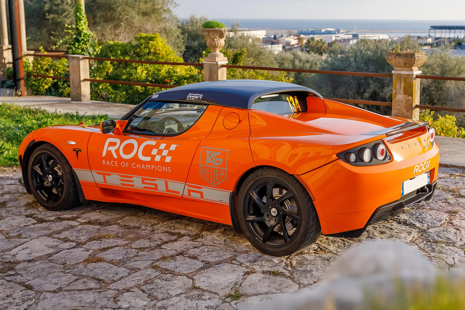 La voiture orange dont il est question est une des quatre Tesla qu’on a vue lors de cette édition du RoC présentée à l’aréna Esprit de Düsseldorf en Allemagne, en novembre 2010. Ces voitures servaient à des« duels » : des démonstrations opposant des vedettes de la Formule 1 (comme Schumacher), du Rallye mondial, des 24 Heures du Mans, du BTCC et d’autres disciplines de sport automobile.