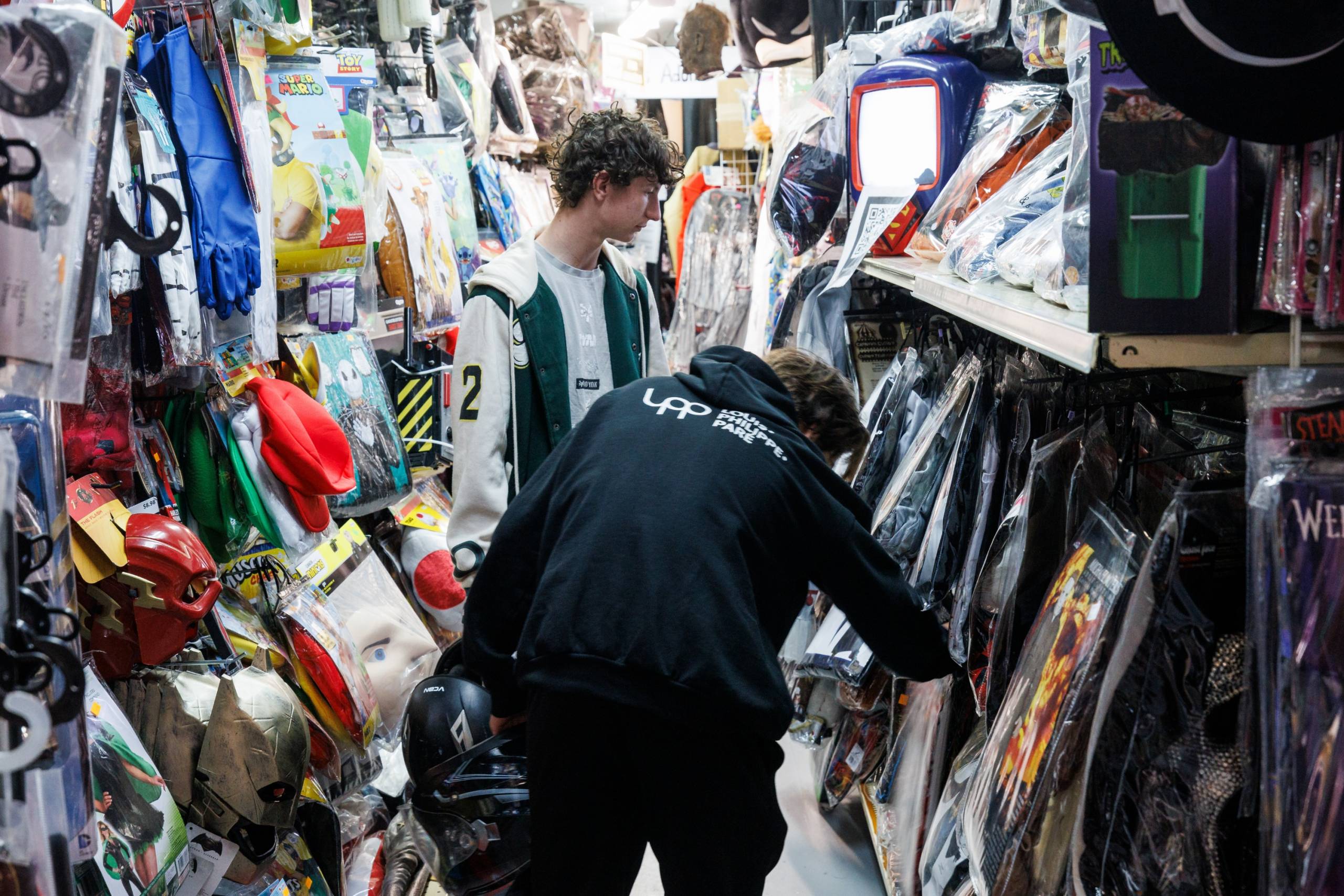 Nathan Sulyvan et Nathan Gagnon en plein magasinage pour l’Halloween. (Photo : Le Soleil – Denis Germain)