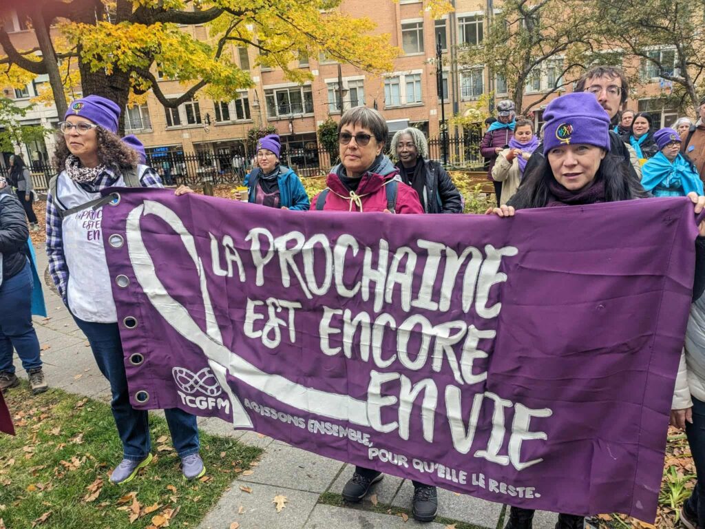Pour l’occasion, les rues de Québec se sont transformées en tableaux vivants et performances artistiques percutantes : des mises en scène dénonçant les délais médicaux pour diagnostiquer les fibromes et l’endométriose, les statuts précaires des travailleuses et travailleurs sans papiers, ou encore le nombre grandissant de femmes et d’enfants décédés en contexte de violence conjugale.