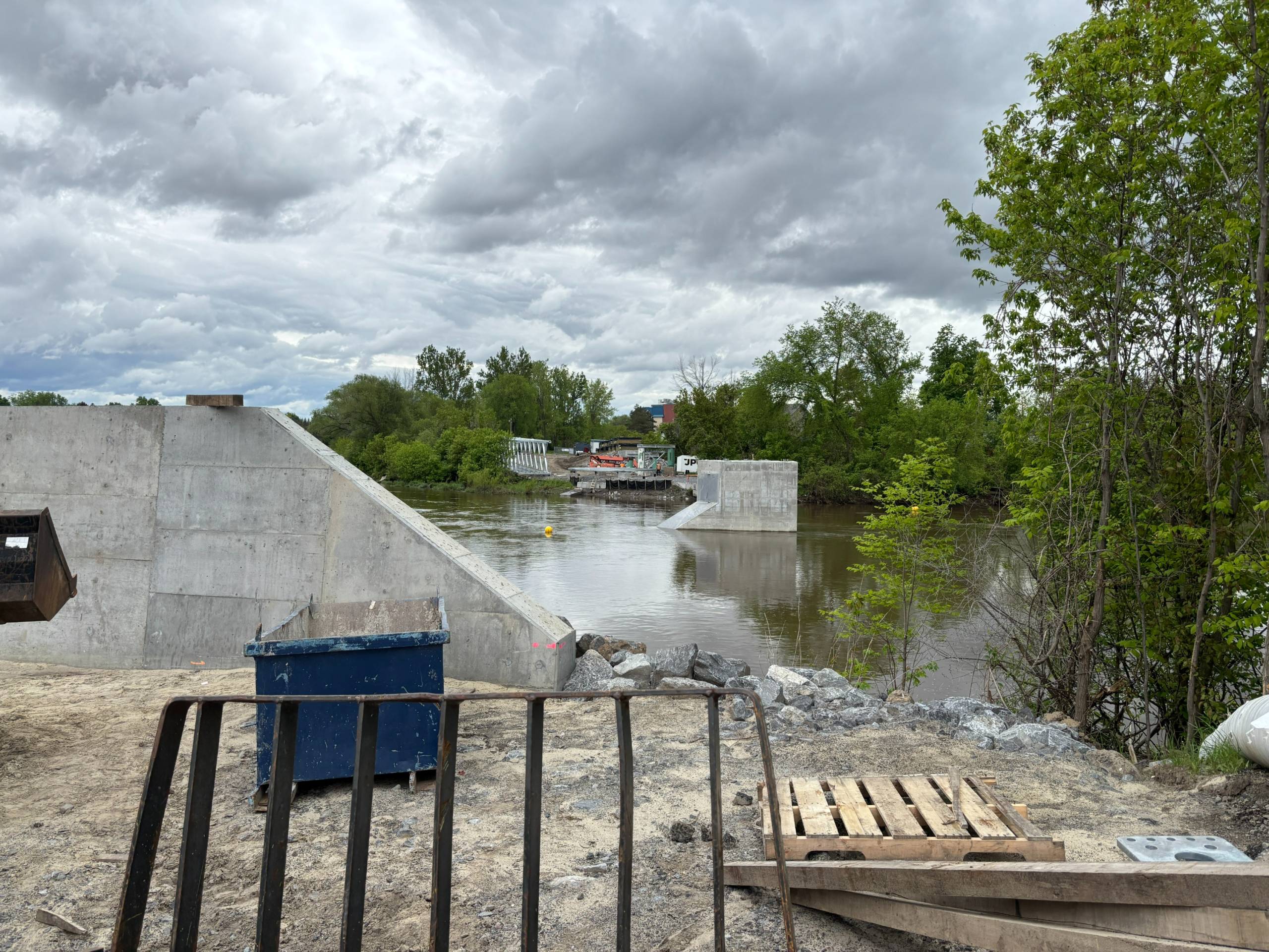 La passerelle multifonctionnelle permettra de passer d’une rive à l’autre de la rivière à pieds ou à vélo à partir de l’avenue de la Verdure et du parc Chèvrefils. (Photo : Le Soleil – Valérie Lessard)