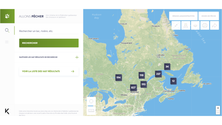Où sont les meilleurs endroits pour pêcher au Québec? Cette carte interactive peut vous le dire! Été comme hiver, elle nous permet de connaître les lieux où l’on peut pêcher et quelles espèces de poissons on peut y trouver.