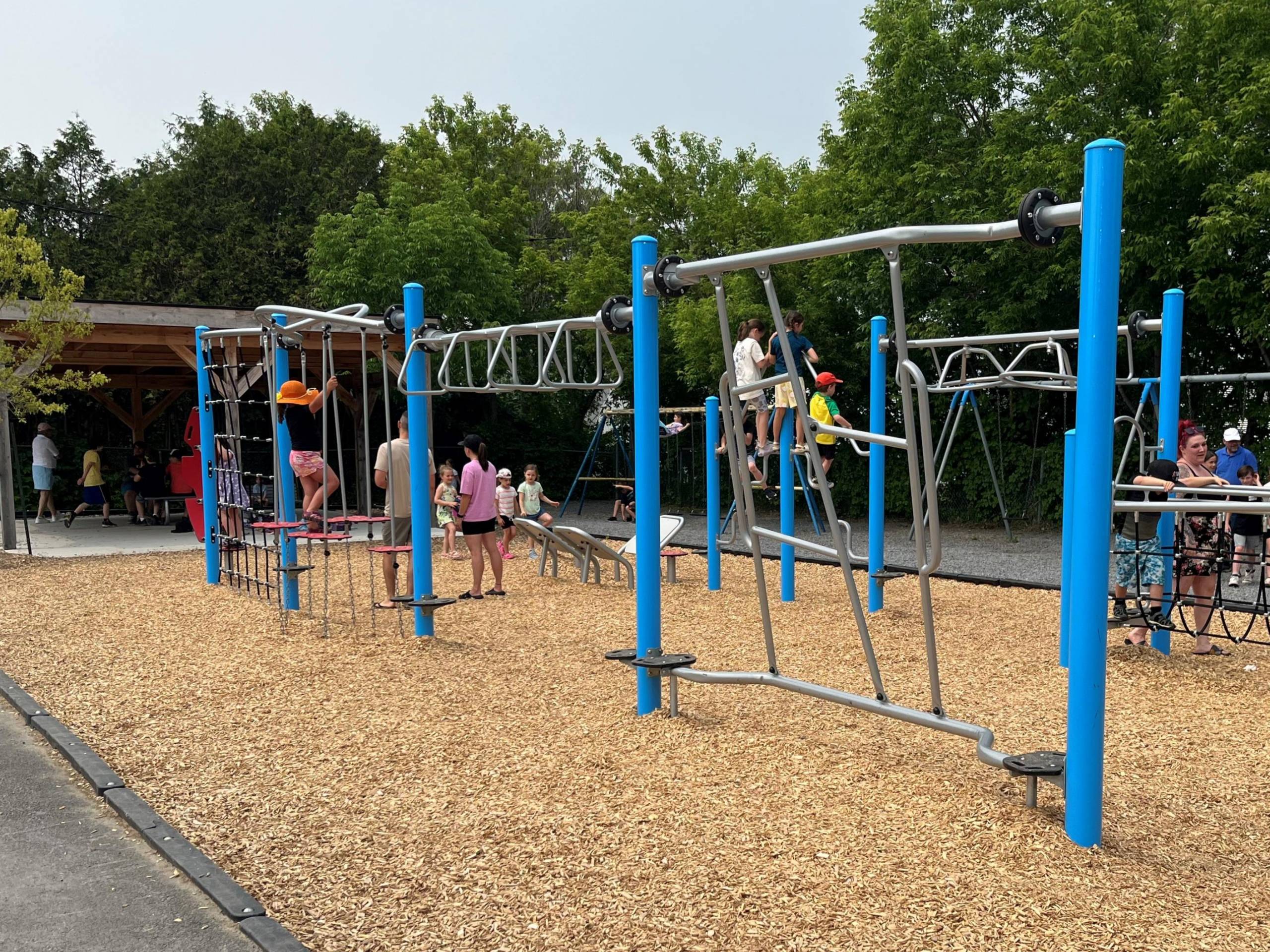 Le module d’hébertisme est déjà populaire dans la cour d’école. (Photo : gracieuseté)