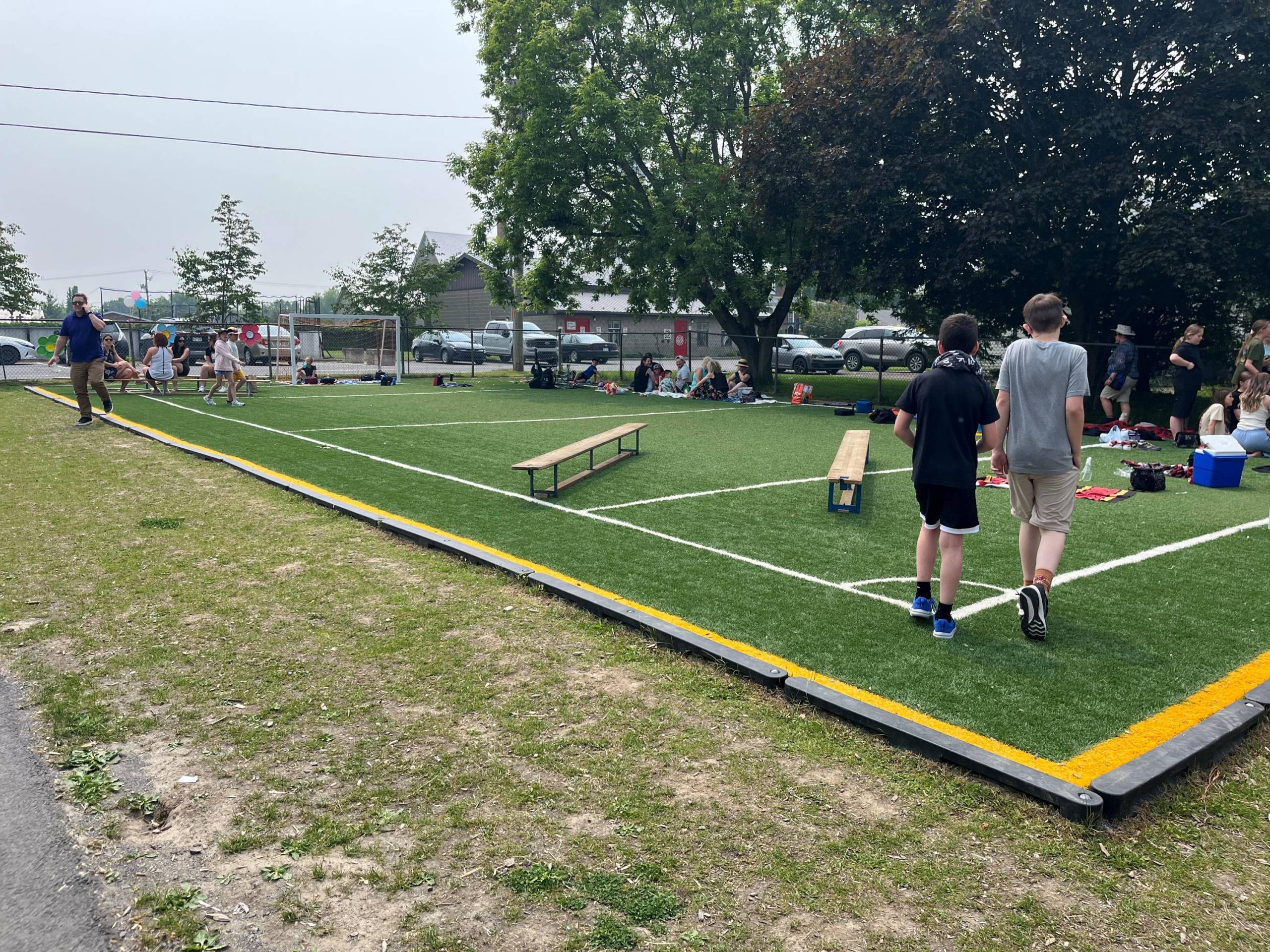 La surface de soccer est l’un des éléments qui donnent de la vie au parc-école à Saint-Urbain-Premier. (Photo : gracieuseté)