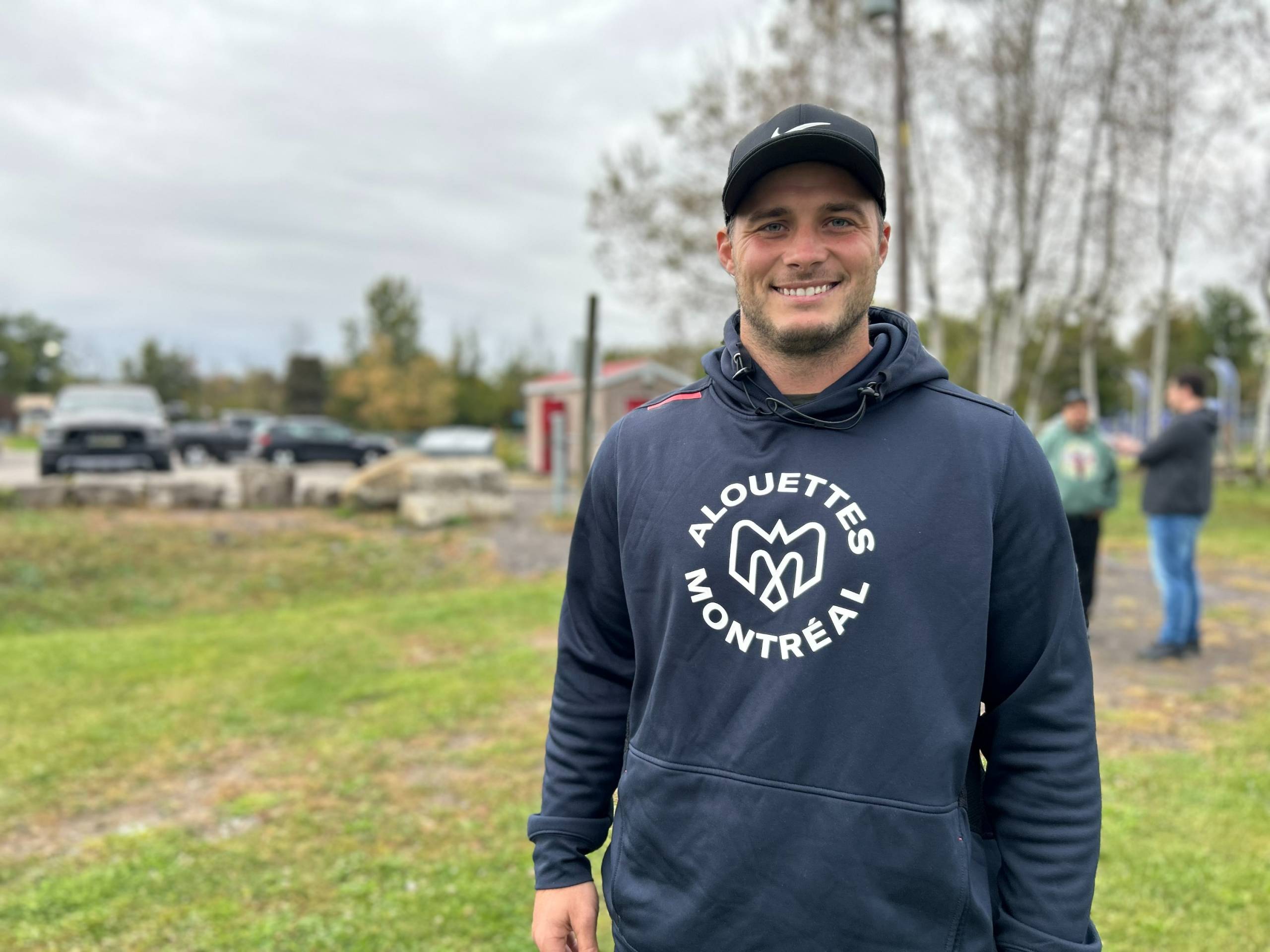 Jeshrun Antwi (demi-offensif), Alexandre Gagné (secondeur), Tyrice Beverette (secondeur), ainsi que Dylan Wynn (joueur de ligne défensive) ont passé du temps avec les jeunes, sur un terrain près du Complexe sportif de Kahnawake.