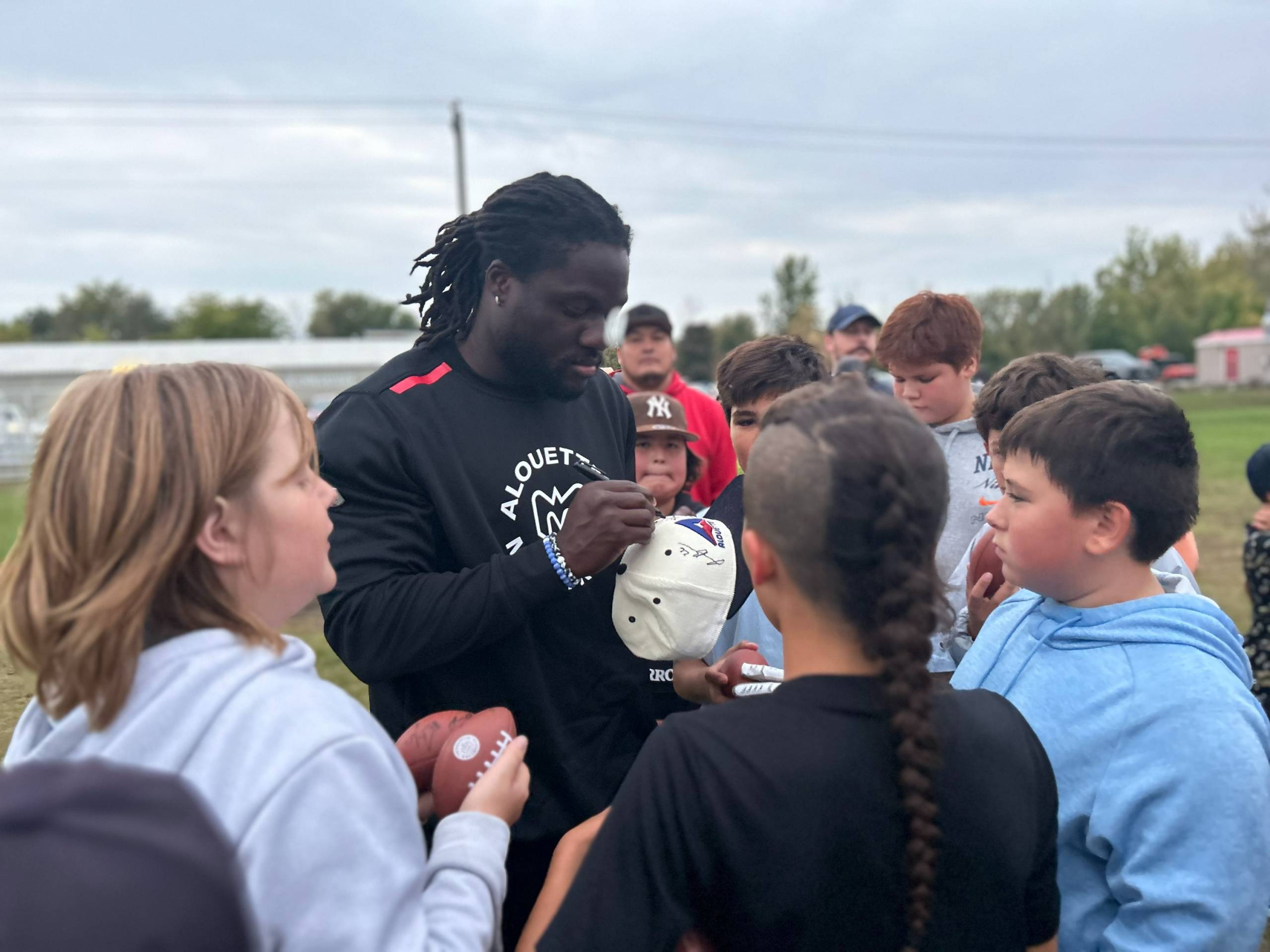 Les joueurs des Alouettes ont signé des chandails, des casquettes ou encore de petits ballons de football. (Photo : Le Soleil – Tristan Ouimet)