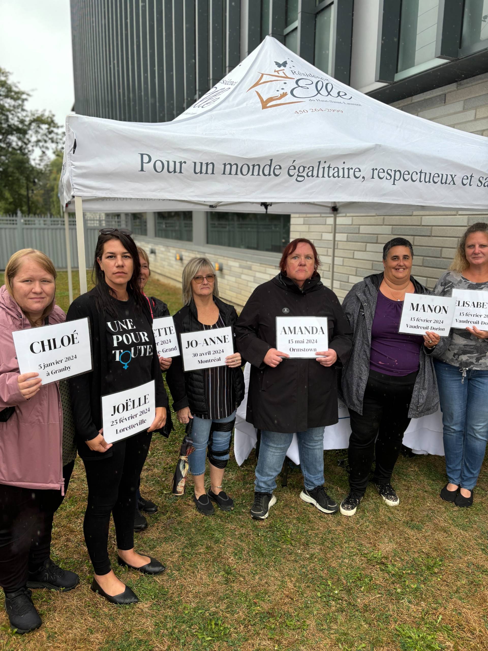 La prochaine femme qui sera victime de féminicide est présentement en vie. Voilà pourquoi des organismes en prévention de la violence envers les femmes se sont réunis au palais de justice de Salaberry-de-Valleyfield en marge de la comparution de Nicholas Gravel mercredi, accusé du meurtre de sa conjointe Kelsey Watt.
