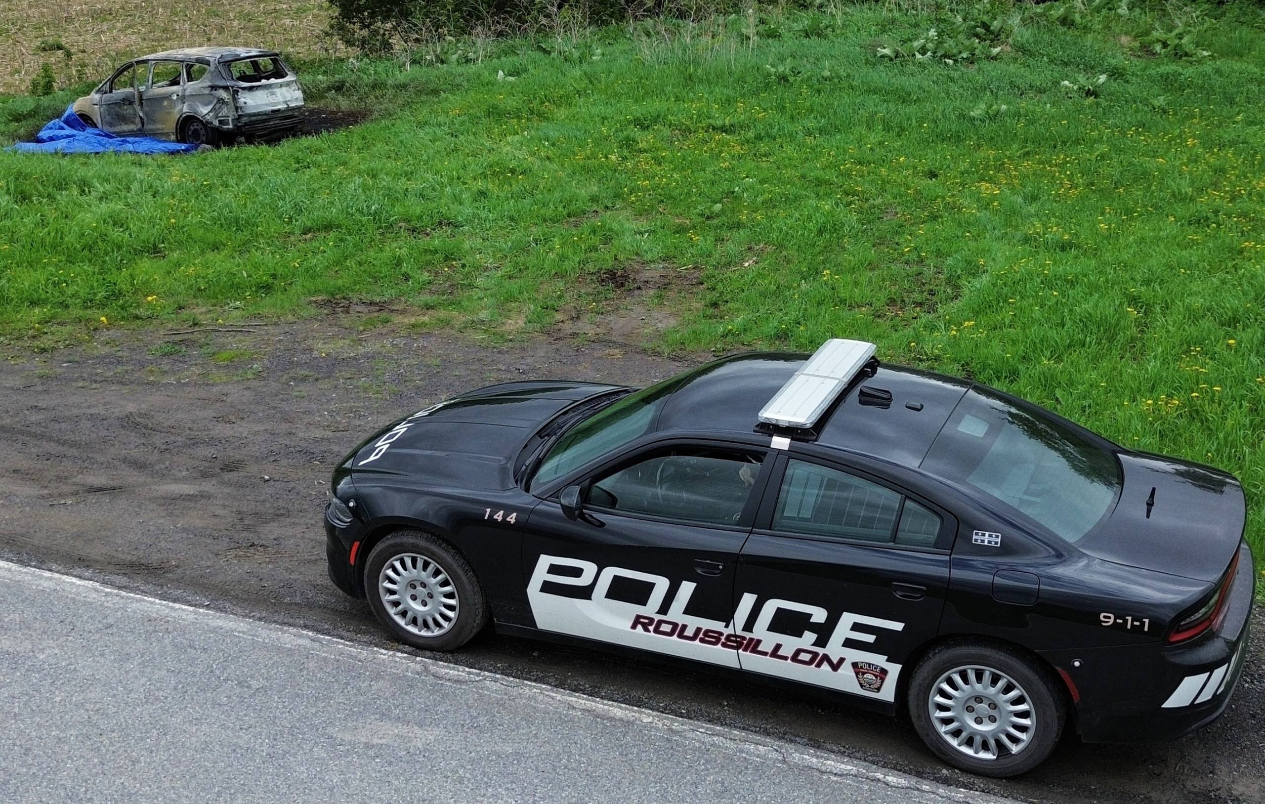 Un véhicule de la Régie intermunicipale de police Roussillon surveillait la scène. (Photo : Gracieuseté – Erick Rivest)