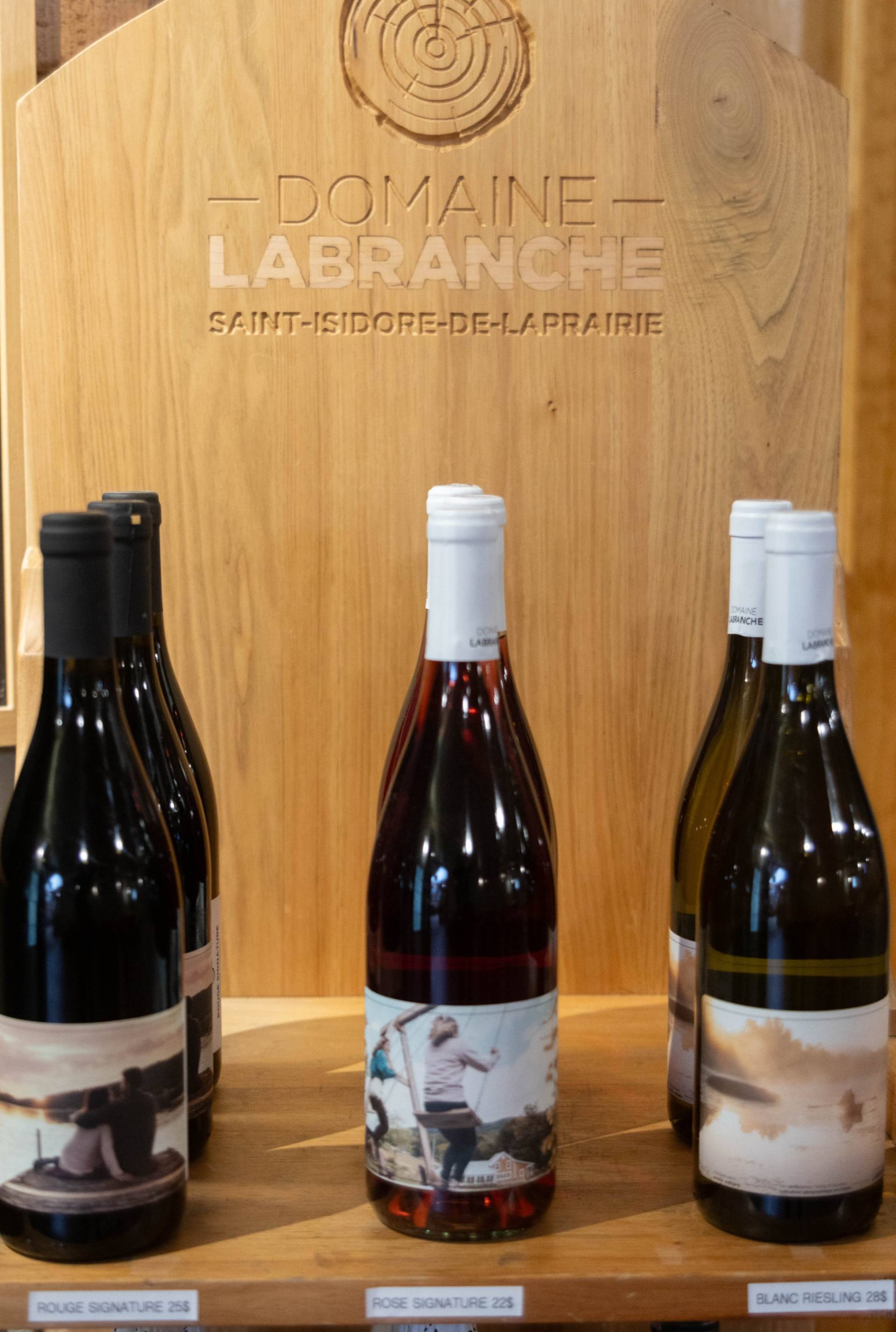 Pour souligner cette chronique un peu spéciale, j’ai revisité un vignoble tout près de chez nous, soit le Domaine Labranche à Saint-Isidore. La boutique est située à même la cabane à sucre connue sous le nom de cabane Desgroseilliers, maintenant appelé Domaine Labranche. Catherine Landry, responsable du volet récréotouristique vous y accueille, tandis que Louis Desgroseilliers, copropriétaire, s’occupe de la vinification, accompagné de Corentin Gallucci, œnologue à temps plein pour le vignoble.