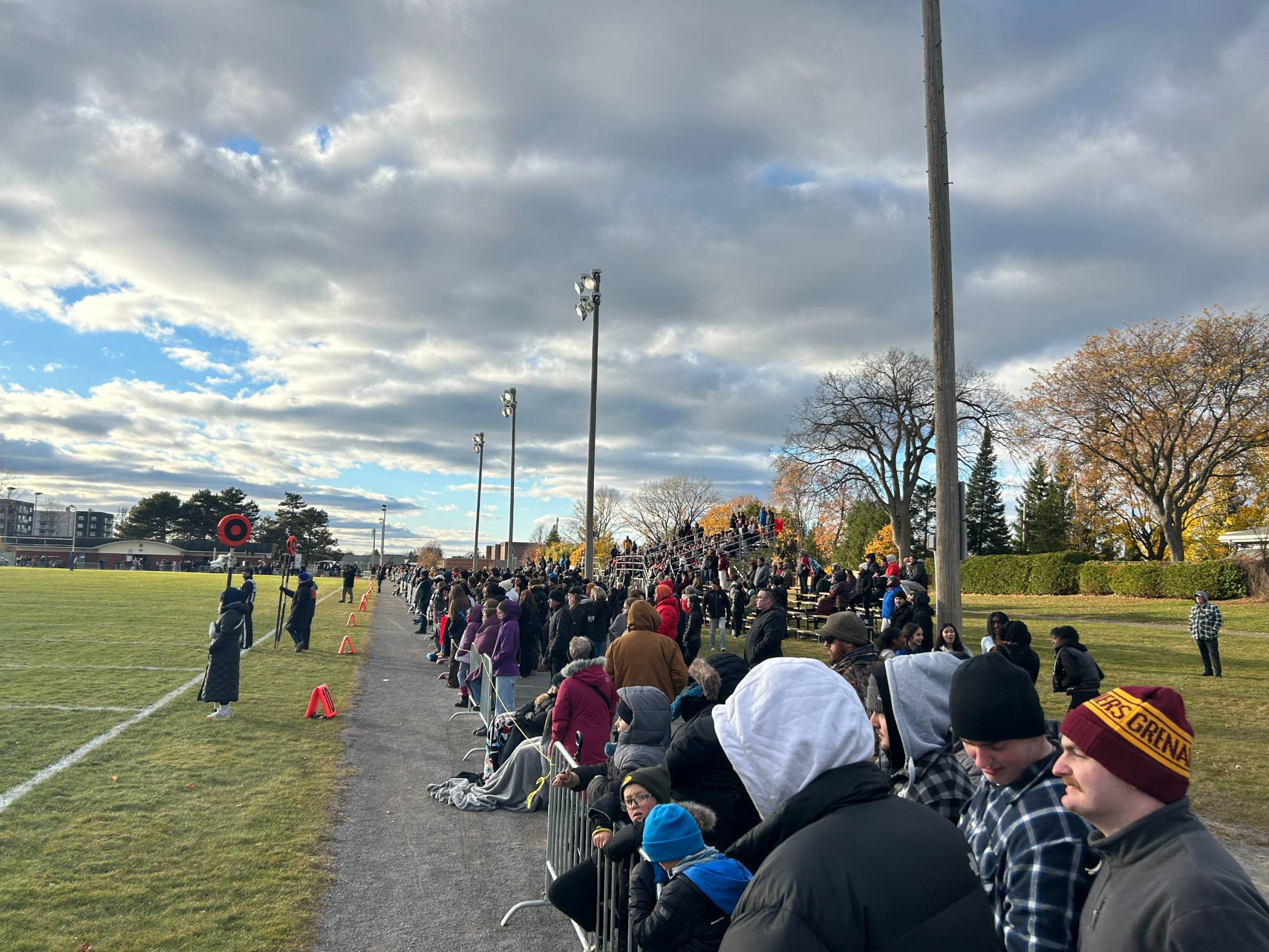 Plusieurs partisans des Blazers et des Grenadiers se retrouvaient sur le bord du terrain, derrière des grilles, et dans les estrades. (Photo : Le Soleil – Tristan Ouimet)