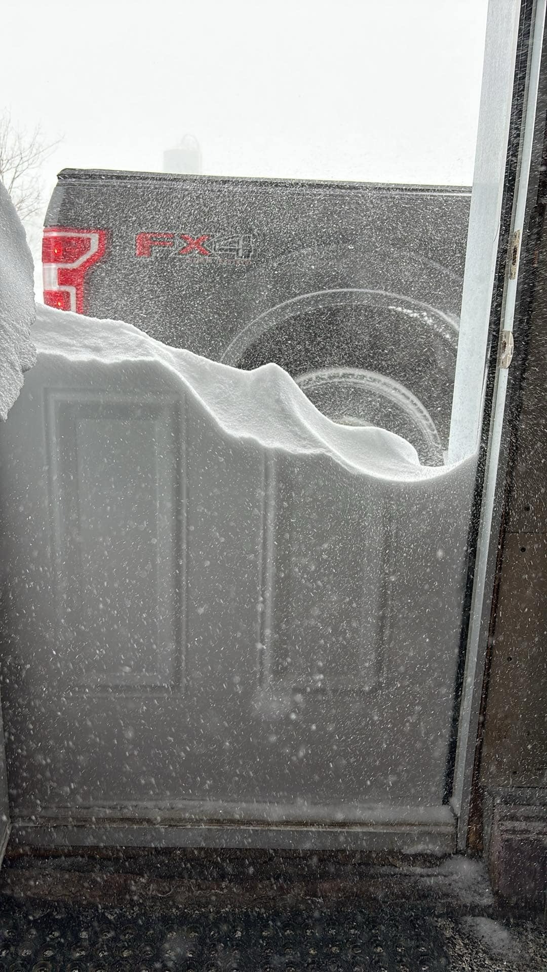 L’empreinte de la porte dans la neige témoigne des quantités tombées. (Photo: gracieuseté – Municipalité de Saint-Isidore)