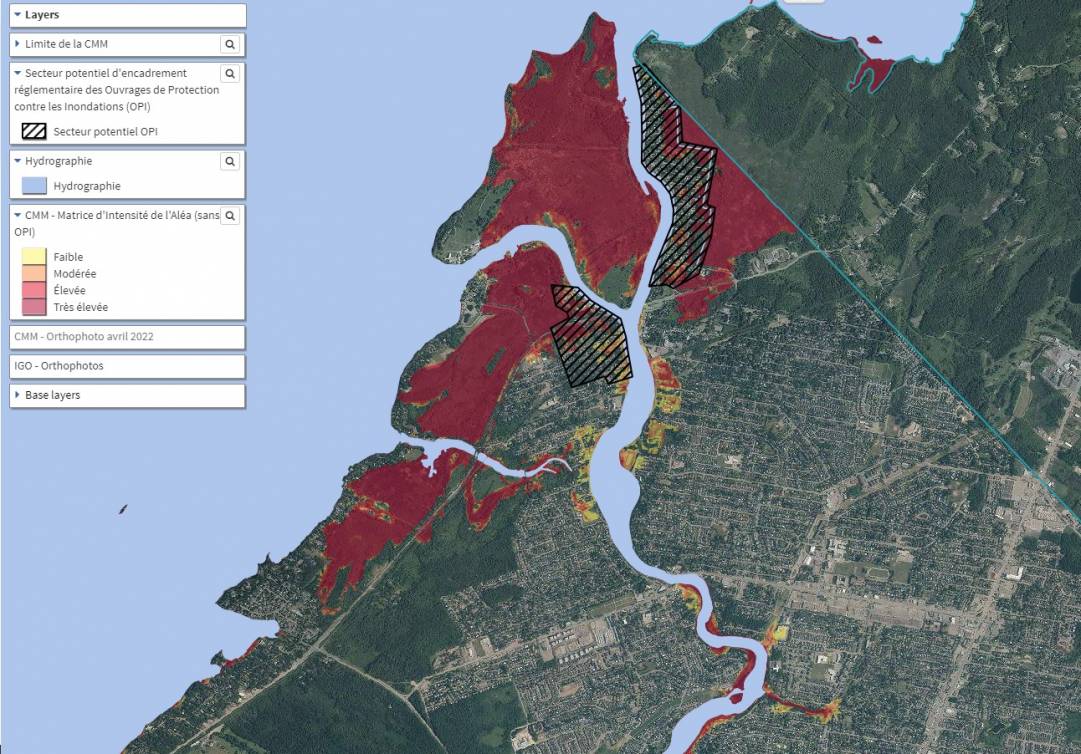 Le gouvernement du Québec est en voie de moderniser son cadre réglementaire sur les milieux hydriques et les zones inondables. La nouvelle carte préliminaire a été produite par la CMM pour informer les municipalités et les citoyens et elle est «basée sur les modalités du guide méthodologique élaboré par le gouvernement du Québec, afin de leur permettre de visualiser l’impact de la proposition réglementaire sur leur territoire». Elle tient compte des inondations de 2017, 2019 et 2023 ainsi que l’effet anticipé des changements climatiques. Dans de nombreuses villes, cela veut dire qu’un nombre important de résidences seront désormais incluses en zone inondable.